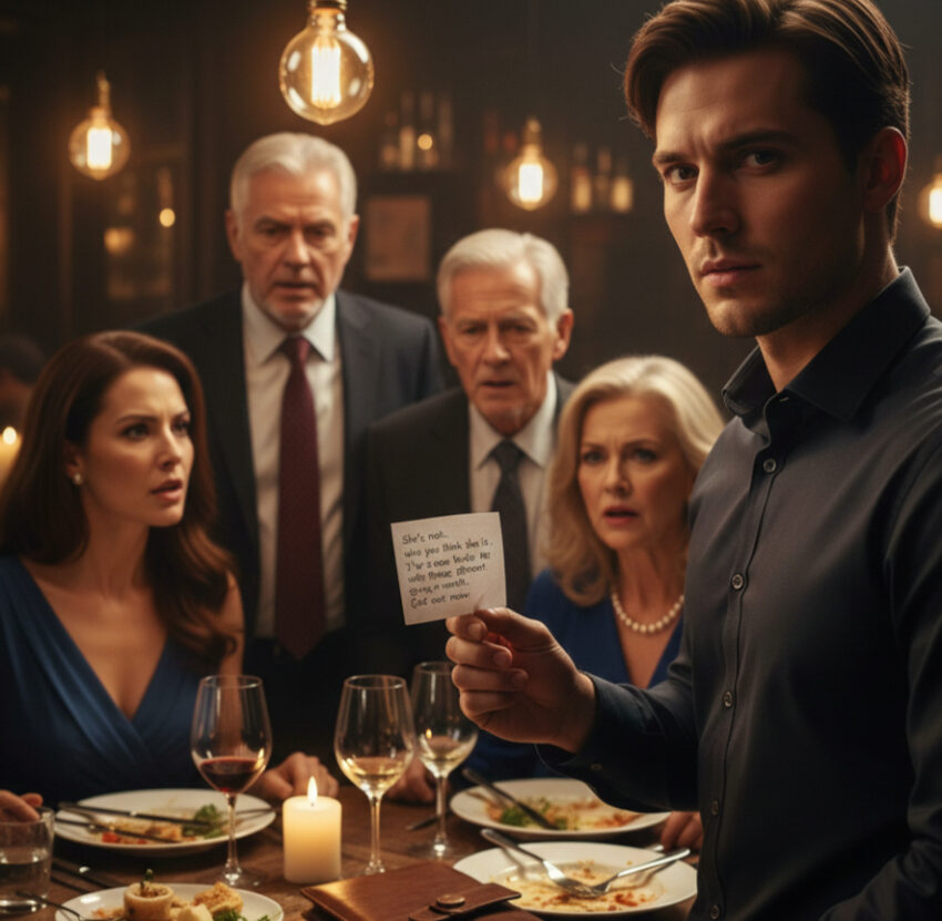I stood my ground and refused. I told the waiter I would pay for my meal and Sarah’s, but the rest was on them. As the argument began to heat up, the waiter—who had been watching the scene unfold—quietly leaned over and slipped me a small, folded piece of paper while taking my card.
