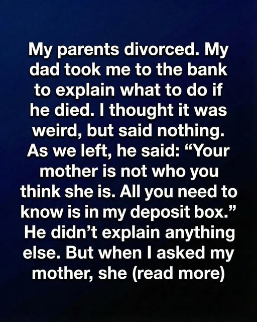 I was twelve when my parents divorced, old enough to sense tension but too young to understand the quiet decisions adults make when they’re trying to protect something fragile. A few weeks after the paperwork was finalized, my dad took me to the bank. He explained practical things—where documents were kept, who to contact, what steps to follow if anything ever happened to him.