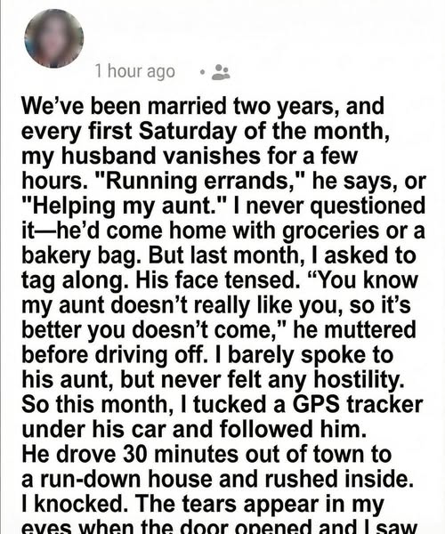 For two years of marriage, there was one small pattern I never questioned. On the first Saturday of every month, my husband would leave for a few hours with a vague explanation — errands, family obligations, nothing dramatic. He always came back with something ordinary in his hands: groceries, pastries, small proofs of normalcy. I trusted him. Trust is quiet like that; it doesn’t demand evidence. But the month I asked to come along, something shifted. His body tensed, his voice tightened, and he dismissed the idea with an excuse that didn’t match the man I knew. It wasn’t anger that stayed with me afterward — it was confusion. The kind that hums softly in the background until you can’t ignore it anymore.