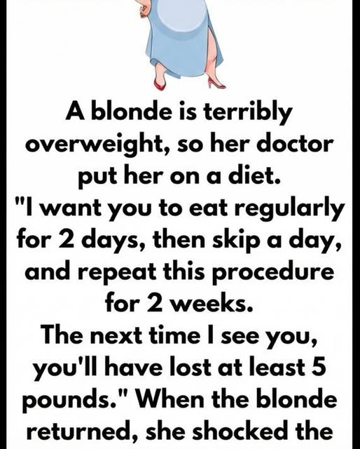 “I want you to eat regularly for 2 days, then skip a day,” the doctor explained. “Repeat this procedure for 2 weeks. The next time I see you, you’ll have lost at least 5 pounds”.