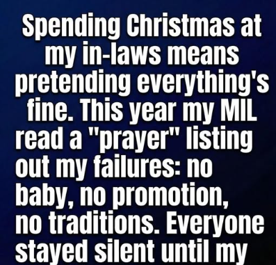 Spending Christmas at my in-laws has always felt like walking on eggshells. For years, I perfected the art of “the polite smile,” pretending everything was fine while my Mother-in-Law (MIL) took subtle jabs at my life. But this year, the mask didn’t just slip—it shattered.