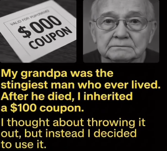 My grandfather had a reputation that followed him everywhere he went. He reused envelopes, saved rubber bands, and turned off lights like electricity was a personal expense. Growing up, we joked that he treated money less like a tool and more like something to be guarded at all costs. So when he passed away and I learned that my inheritance consisted of a single $100 coupon, I wasn’t surprised—just disappointed.