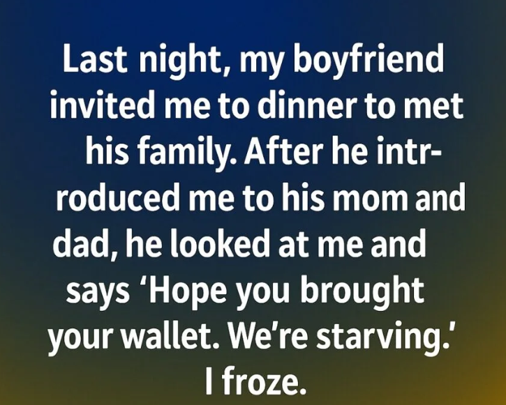 Last night, my boyfriend invited me to dinner to met his family. After he introduced me to his mom and dad, he looked at me and says ‘Hope you brought your wallet. We’re starving.’