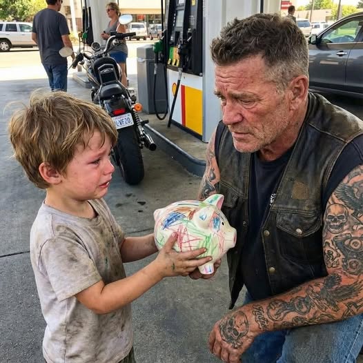 Sixty-three-year-old Tom, a retired cop and Vietnam veteran, was pumping gas when five-year-old Ethan approached him with a crayon-marked piggy bank and a heart-wrenching plea: “Please make my daddy stop hurting mommy.” The boy offered his entire life savings of forty-seven dollars to the “scary-looking” biker, hoping to end the daily violence his mother, Sarah, endured.