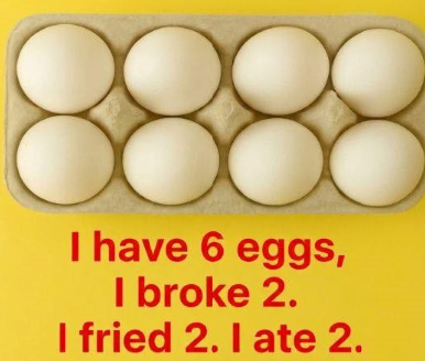 The puzzle is usually phrased in a straightforward way: “I have six eggs. I broke two, fried two, and ate two. How many eggs are left?” At first glance, the wording seems to describe three separate actions involving different eggs. Because of that, many people instinctively add the numbers together and assume that all six eggs must be gone. This quick answer feels logical and satisfying, which is why so many readers stop there. The riddle works because it takes advantage of how easily we skim information and fill in gaps without fully analyzing what is being said.