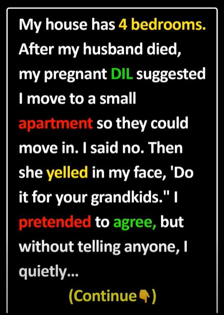 “You’re just one person,” she told me, her voice sharp. “We’re a growing family. It’s selfish for you to keep all this space when your grandkids could be growing up here. Move to a small apartment—do it for them.”