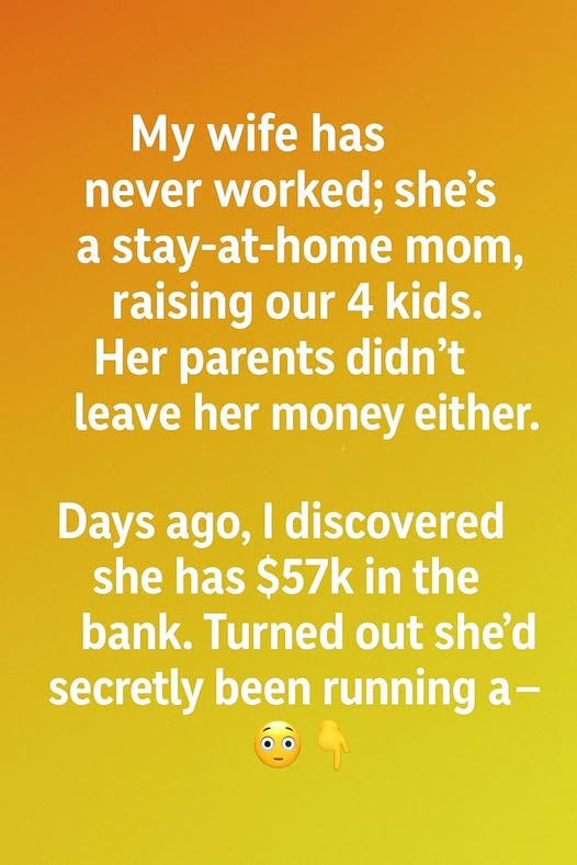 I always thought I knew everything about my wife. She’s been a stay-at-home mom since the day our first child was born, fully devoted to raising our four kids and taking care of our home. She never had a job outside, and her parents didn’t leave her any money. I handled the finances, and she managed the family. It felt like a simple and balanced life.
