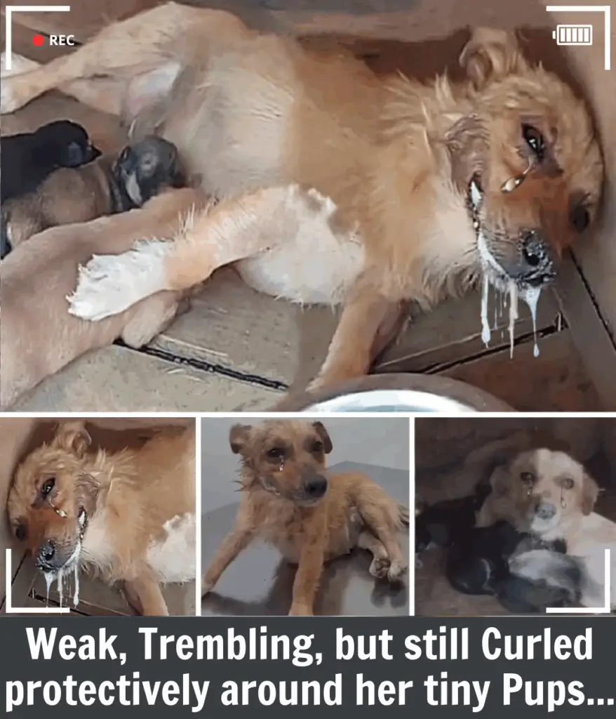 Yet even in her fragile state, she tried to lift her head, as if asking for help for her puppies.