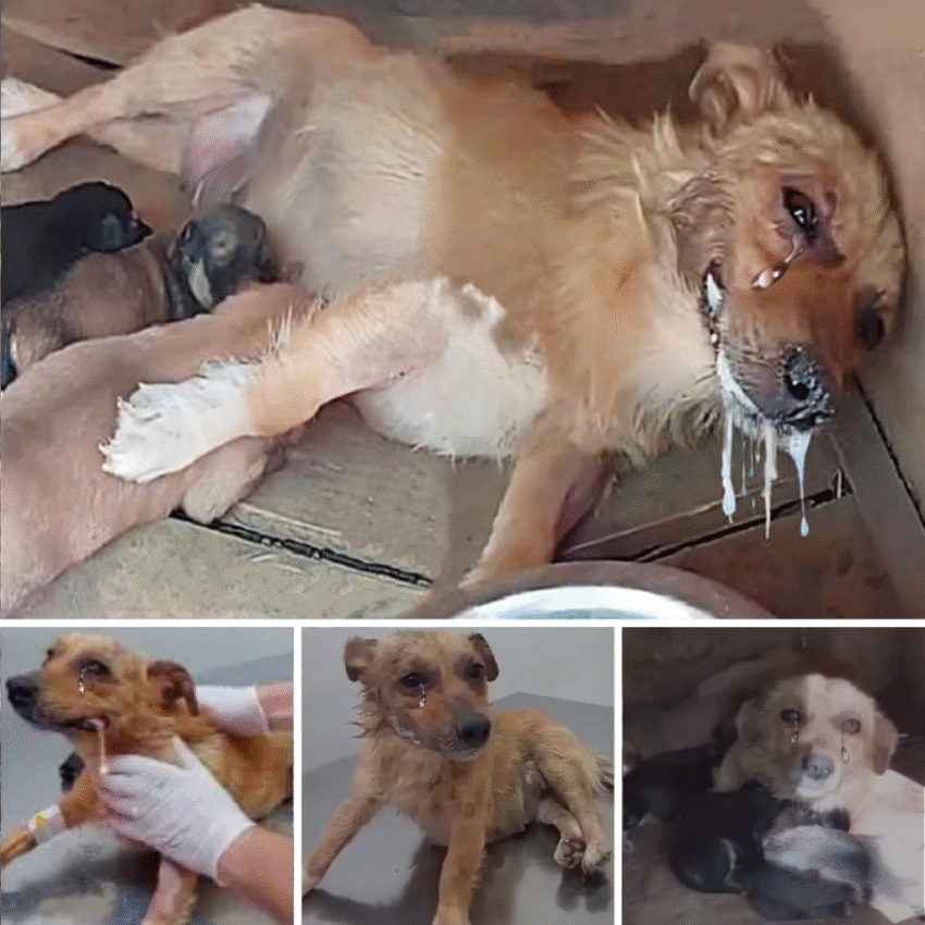 Yet even in her fragile state, she tried to lift her head, as if asking for help for her puppies.