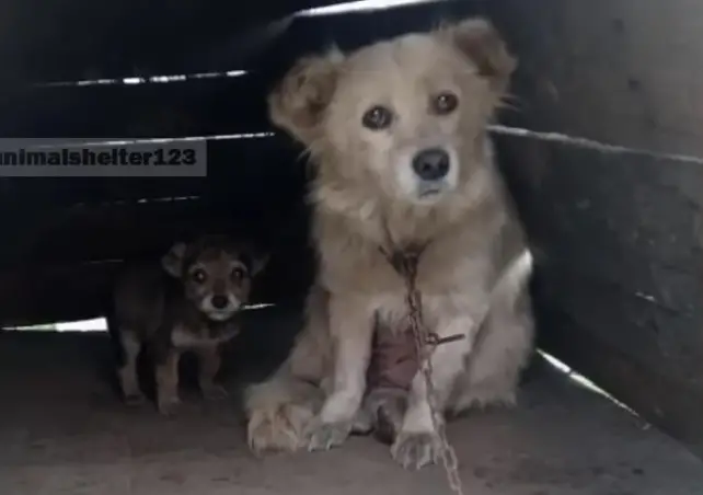 For this mother dog, the chains had been her reality for far too long. Her body showed the toll—thin, weary, and frail from both hardship and hunger.
