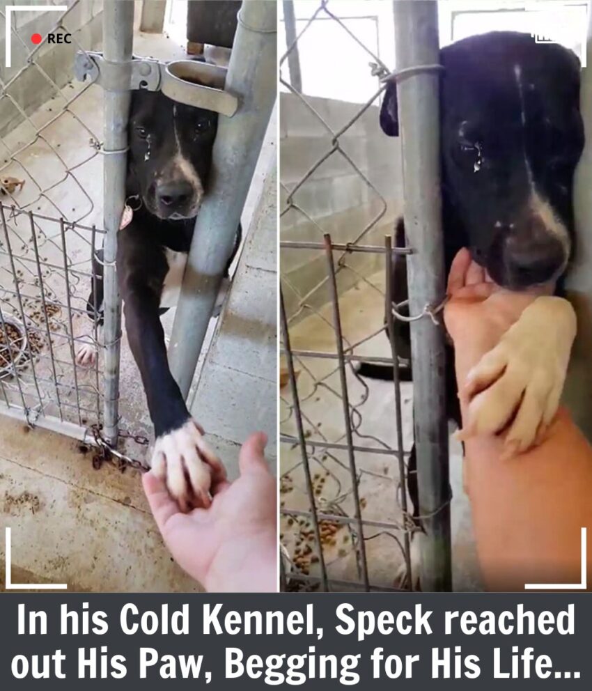 Speck wasn’t just any dog at the shelter. He had an extraordinary way of showing affection, something so simple yet deeply moving. While other dogs barked, jumped, or wagged their tails, Speck quietly stretched his paws through the kennel bars, holding onto the hands of anyone who stopped by.