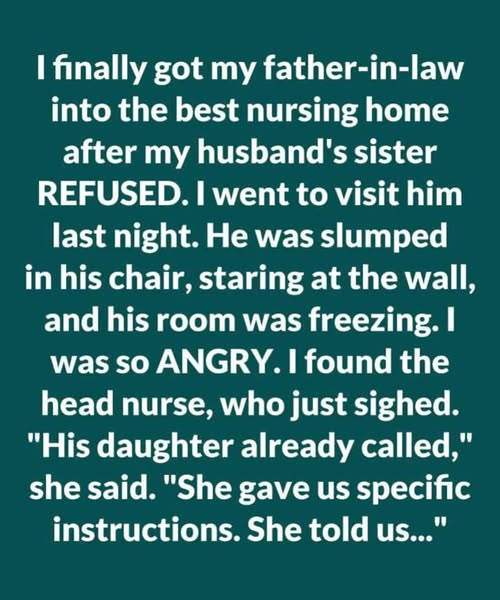 I was the one who finally managed to get my father-in-law into a top-tier nursing home after my late husband’s sister flat-out refused to help with anything beyond signing the admission papers.