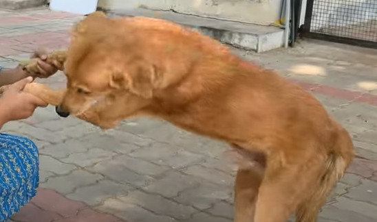 Meet Lalu—a stray dog whose quiet cries and limp captured the attention of a kind stranger.