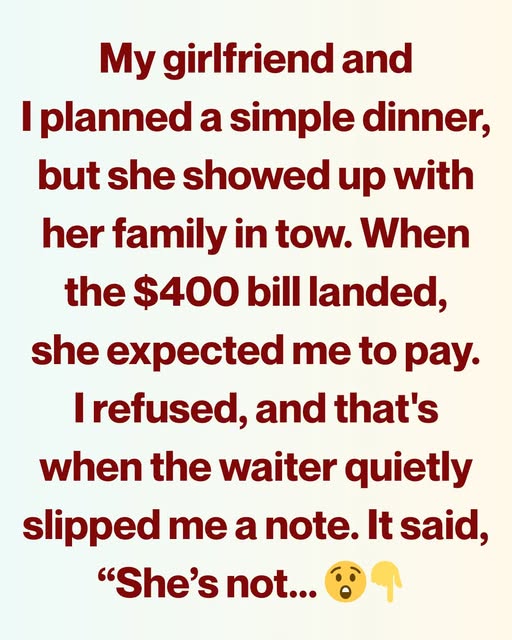 She acted like nothing was wrong. By the time the plates were cleared, my chest felt tight. When the bill landed on the table, I saw the total: $400.
