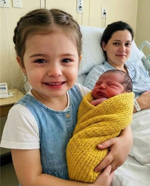 The hospital room was quiet in the fragile way only delivery rooms ever are, heavy with disinfectant and exhaustion and relief all tangled together. My body ached as if I had been taken apart and put back together incorrectly, but none of that mattered when I saw my four-year-old daughter climb carefully onto the bed. Lina looked impossibly small, her legs dangling, her hands shaking as the nurse settled her newborn sister into her lap. I had worried for months about jealousy and fear, about whether my first child would feel replaced. Instead, Lina cradled the baby with a seriousness that felt far older than her years, rocking gently, whispering soft sounds under her breath as if she had rehearsed this moment long before it arrived.